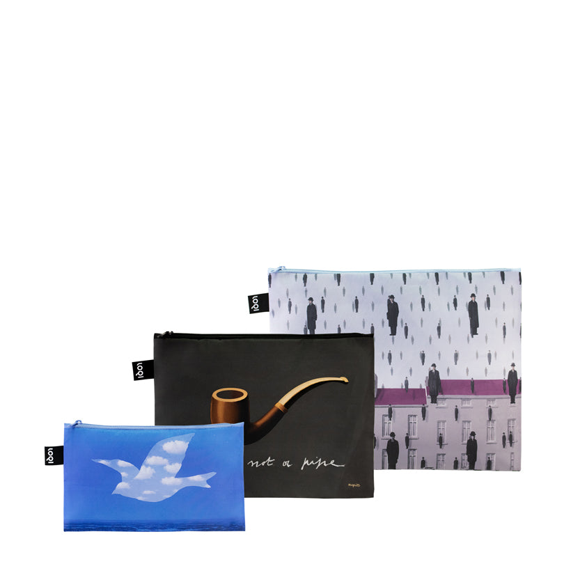 Zip pocket "Rene Magritte - Golconda, The Treachery of Images, The Promise Recycled", confezione assortita da 3 pezzi