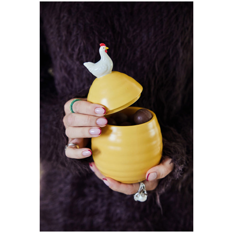 Barattolo con gallina sul coperchio "Ellen" cm Ø11,5x18,5