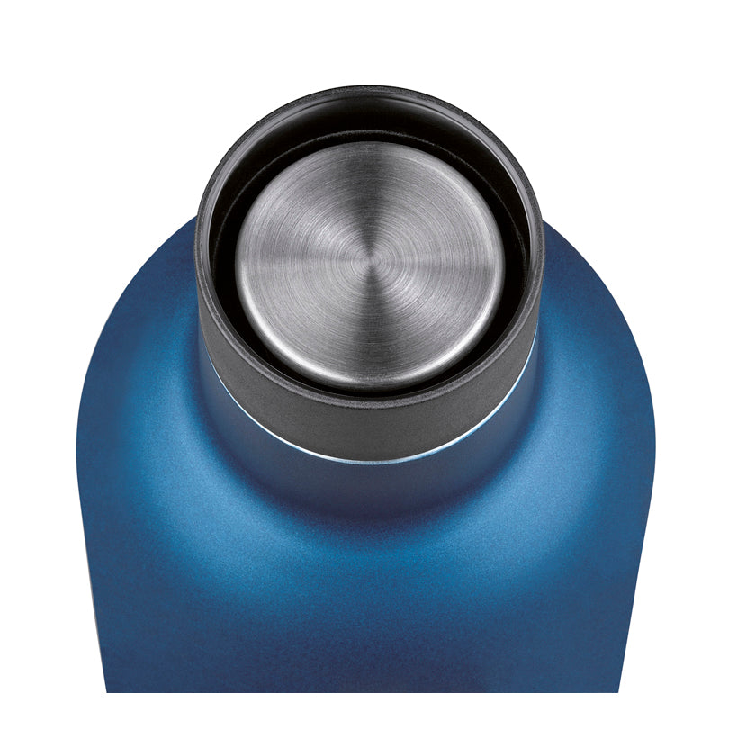 La bottiglia termica, realizzata in acciaio inossidabile, è caratterizzata dalla sua imboccatura a 360°, che consente di bere da qualsiasi punto del bordo della bottiglia. Dotata di un sistema a doppia parete con rivestimento interno in rame, che mantiene le vostre bevande calde fino a 18 ore e fredde fino a 24 ore. La bottiglia è adatta a bevande gasate, infrangibile ed è a tenuta stagna.