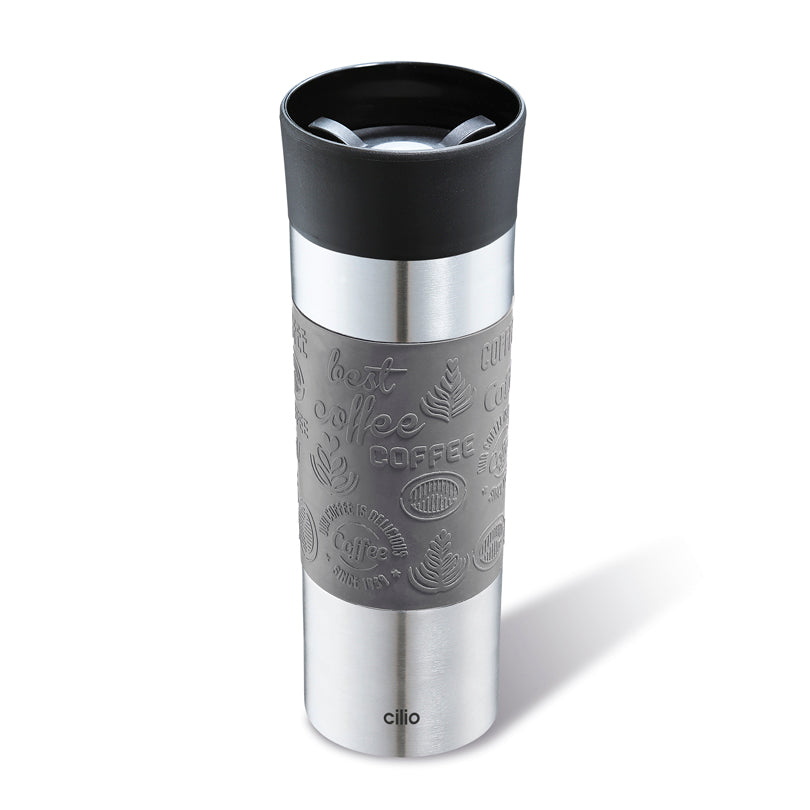 La tazza termica infrangibile, realizzata in acciaio inossidabile satinato e coperchio in resina di alta qualità, mantiene, grazie al sistema a doppia parete, le vostre bevande preferite calde fino a 4 ore e fredde fino a 8 ore. Il coperchio a tenuta stagna è dotato di un'imboccatura a 360°, che consente di bere da qualsiasi punto del bordo della tazza. Il fondo antiscivolo garantisce un arresto sicuro. Il coperchio può essere smontato per una facile pulizia.