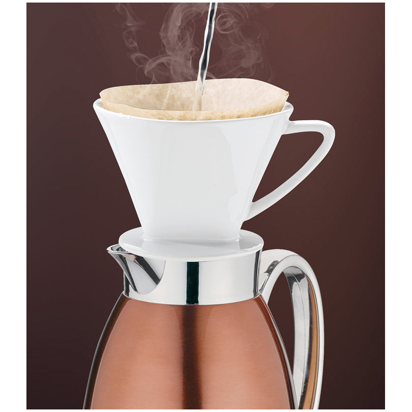 La caraffa termica Venezia è dotata di un inserto sottovuoto realizzato in vetro temperato, che mantiene le bevande calde fino a 12 ore e fredde fino a 24 ore. Inoltre ha un pratico tappo a vite con leva, che consente di versare senza aprirlo.