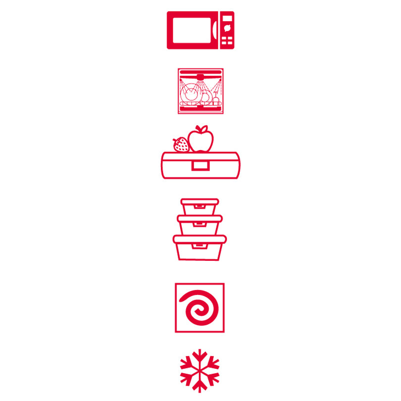 Le caratteristiche dei lunchbox/contenitori salvafreschezza, realizzati in acciaio inossidabile e coperchio in PP in dotazione sono: a tenuta stagna, adatti al freezer e adatti al microonde e al forno, però senza i loro coperchi. I contenitori sono resistenti a temperature da -20°C a +300°C, mentre i coperchi sono resistenti a temperature da -20°C a +90°C. Per una facile pulizia essi sono lavabili in lavastoviglie. Privi di BPA.