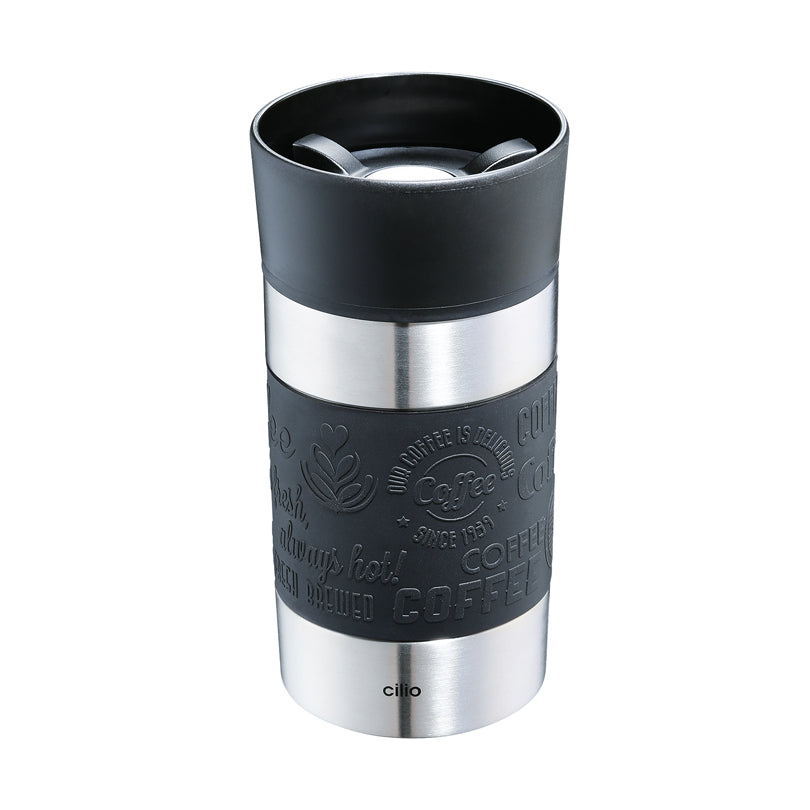 La tazza termica infrangibile, realizzata in acciaio inossidabile satinato e coperchio in resina di alta qualità, mantiene, grazie al sistema a doppia parete, le vostre bevande preferite calde fino a 4 ore e fredde fino a 8 ore. Il coperchio a tenuta stagna è dotato di un'imboccatura a 360°, che consente di bere da qualsiasi punto del bordo della tazza. Il fondo antiscivolo garantisce un arresto sicuro. Il coperchio può essere smontato per una facile pulizia.