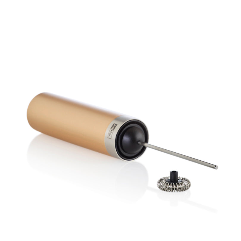 Lo schiumalatte Rapid.3 con un potente motore (10.000 rotazioni/minuto) ed un albero stabile per una perfetta trasmissione della potenza assicura una schiuma perfetta, densa e compatta. Utilizzabile anche per la preparazione di vinaigrette e cocktails. Facile da usare, basta premere il pulsante di accensione. Il frullino è staccabile e lavabile in lavastoviglie. Alimentazione: 3x AAA batterie, incluse nella confezione.