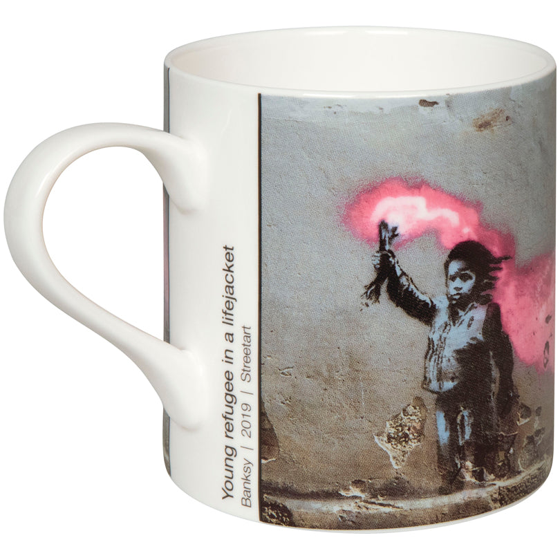 Tazza, disegno: Art Selection - Young refugee in a lifejacket by Banksy ml 400/cm Ø8,3x9
