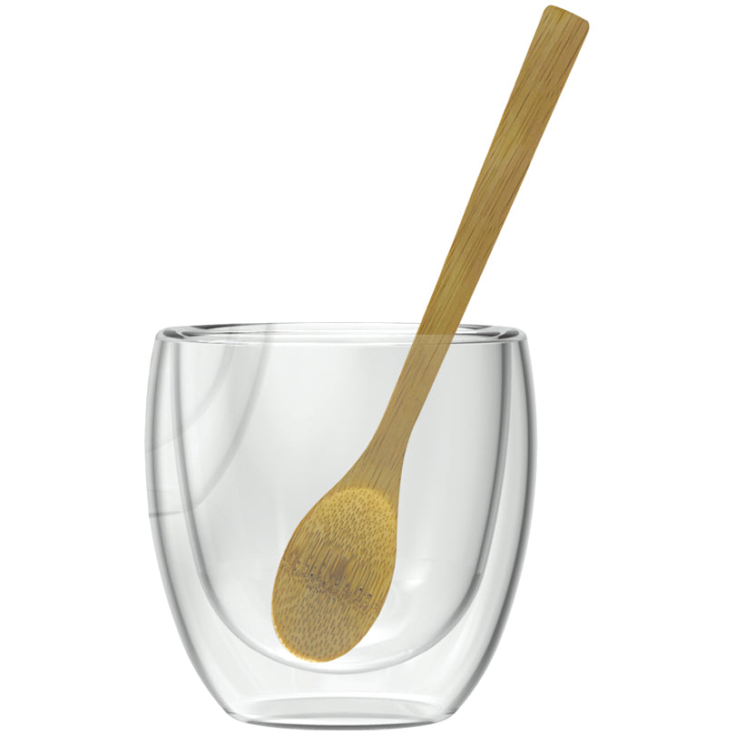 Tazzina caffè a doppia parete con cucchiaino di bambù, confezione 3 pezzi ml 80/cm Ø6x6,5