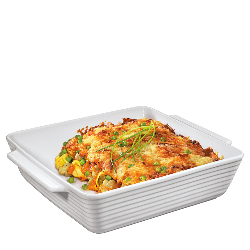Ideale per preparare, servire e conservare. Realizzata in porcellana cotta a 1.400°C. Adatta per forno (fino a +280°C), microonde, frigorifero e freezer (fino a -20°C). Lavabile in lavastoviglie.