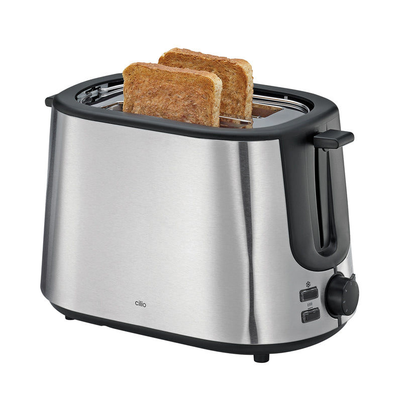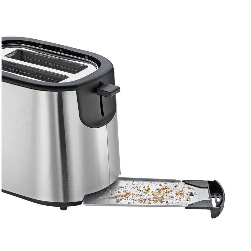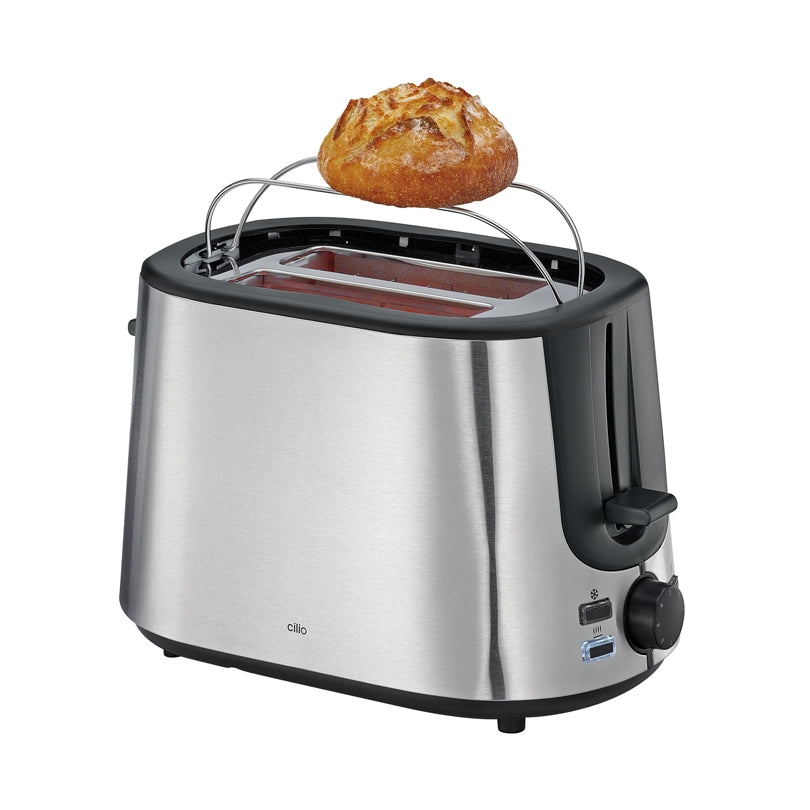 Tostapane a 2 fette con corpo in acciaio inossidabile. Dotato di un supporto per riscaldare panini o brioche, 2 fessure ampie, 7 livelli di doratura regolabili, funzione riscaldamento, funzione congelamento, cassetto raccoglibriciole e pratico riavvolgimento cavo. Dati tecnici: 220 - 240 V, 50/60Hz -1000 Watt