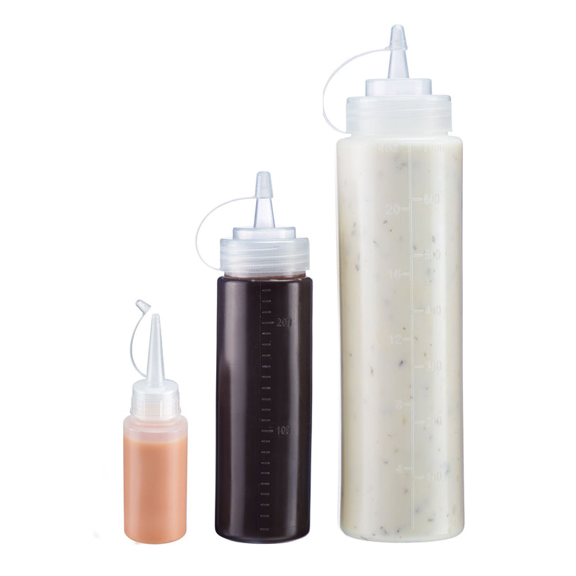 I flaconi dosatori, realizzati in resina (PP e PE), sono la soluzione perfetta per un dosaggio senza sforzo, mirato e pulito di salse, aceto, ketchup e altri ingredienti. Facili da riempire, grazie alla grande apertura. Il tappo a chiusura salda garantisce una conservazione igienica e impedisce il contatto del contenuto con aria e germi. I flaconi mantengono la loro forma anche se vengono utilizzati e riempiti frequentemente. Lavabili in lavastoviglie e privi di BPA