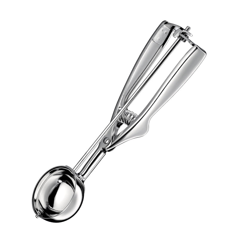 Servite le vostre creazioni di gelato con stile e come un professionista. Con il porzionatore gelato di KÜCHENPROFI si forma delle palline uniformi in un attimo e senza sforzi. Per facilitare l'utilizzo si consiglia di avere un contenitore con acqua calda pronta e di immergere brevemente lo strumento prima di ogni nuova pallina. Naturalmente, il porzionatore è adatto anche per impiattare una varietà di altri alimenti, come per esempio il riso, formaggio fresco, ecc. Lavabile in lavastoviglie.