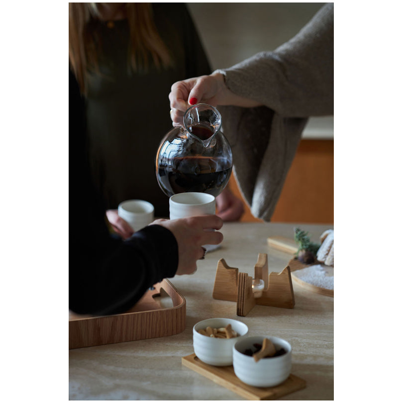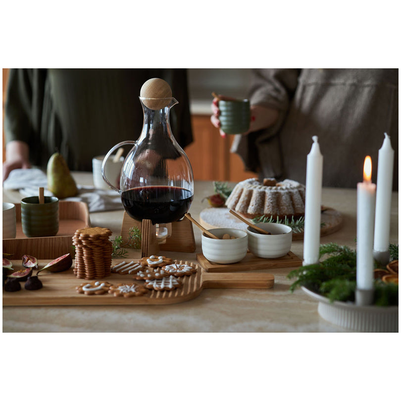 Il set per Vin brulè "Nature" è una riflessione su tradizione e modernità. La caraffa in vetro soffiato si caratterizza per le sue forme rotonde e di stile. Dopo le festività natalizie può essere utilizzata anche come caraffa per l'acqua. Non lavabile in lavastoviglie.