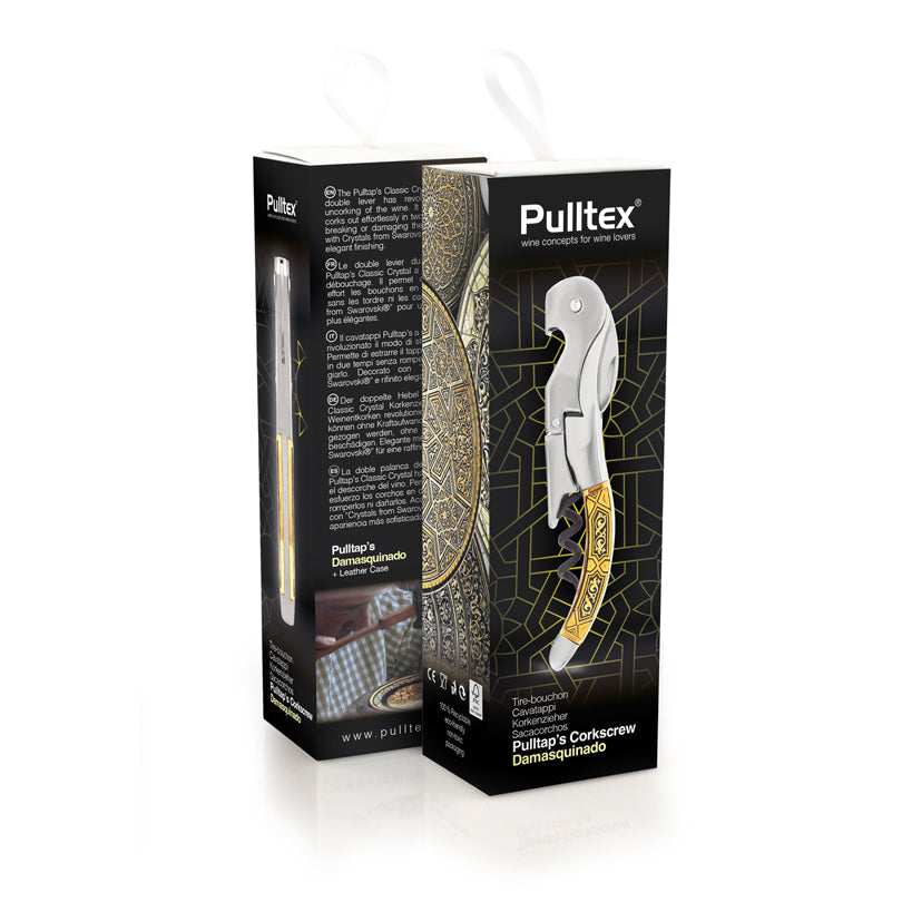 Il cavatappi a doppia leva Damasquinado è una vera opera d'arte orafa. Damasquinado - Tecnica dell'agémina (tausia) è un'arte dell'oreficeria con una tradizione di 1000 anni. Nel manico del cavatappi sono stati aggiunti degli intarsi realizzati da maestri artigiani, che col solo aiuto di un piccolo punteruolo creano meravigliosi disegni su oro e argento.