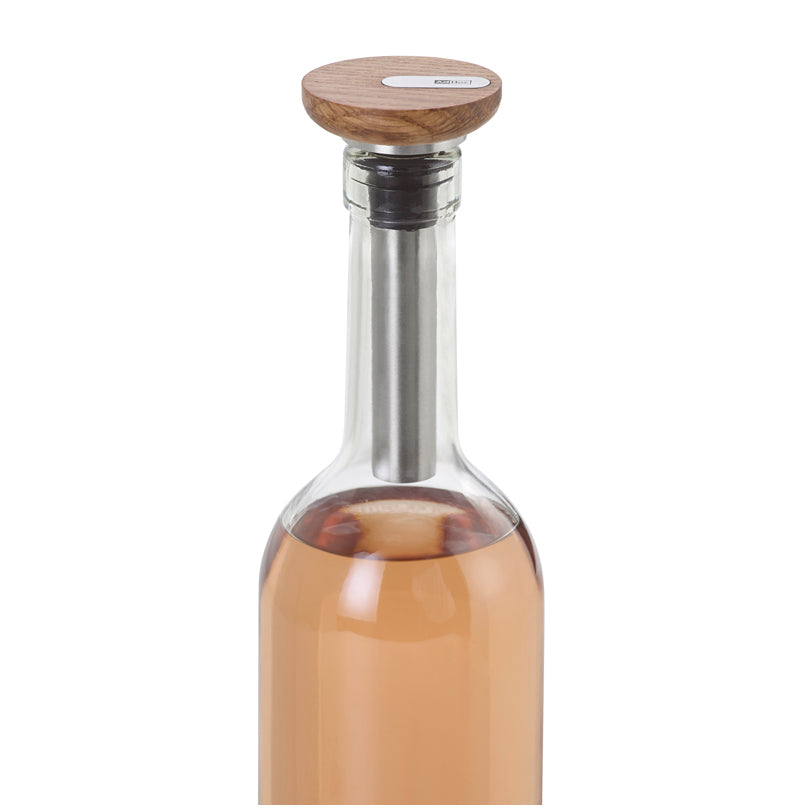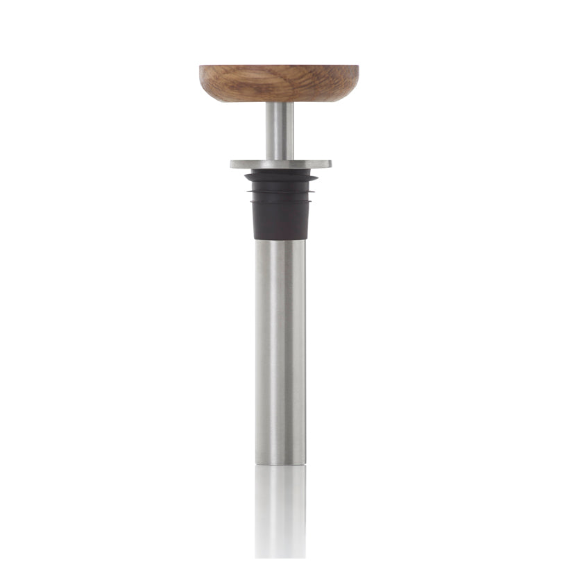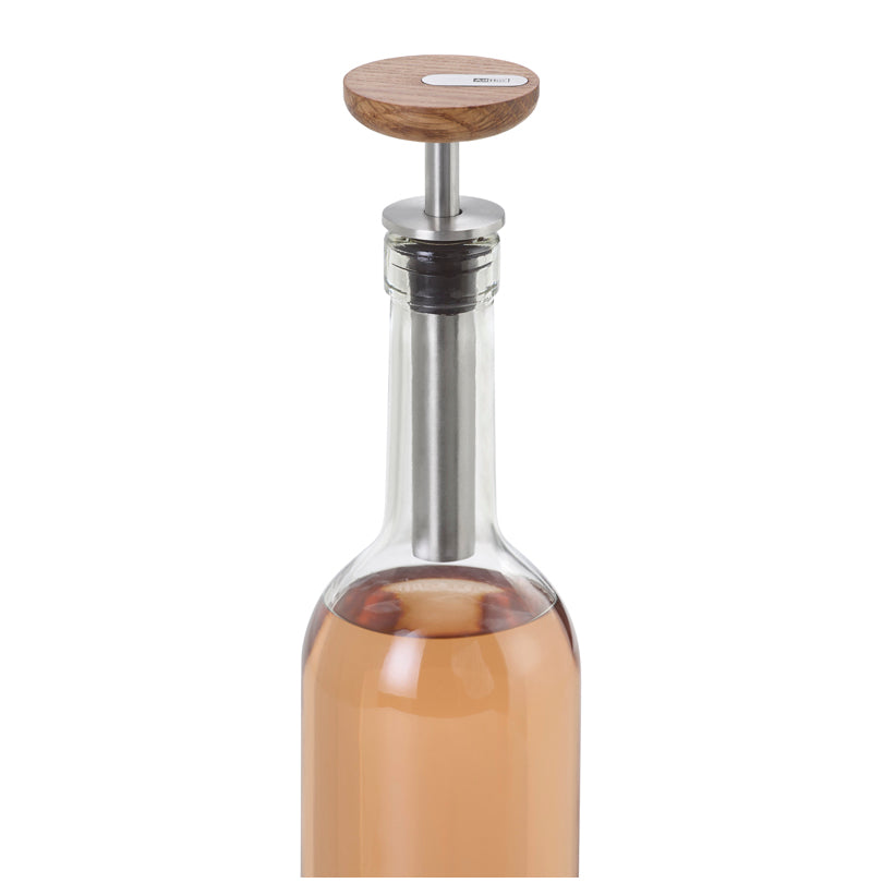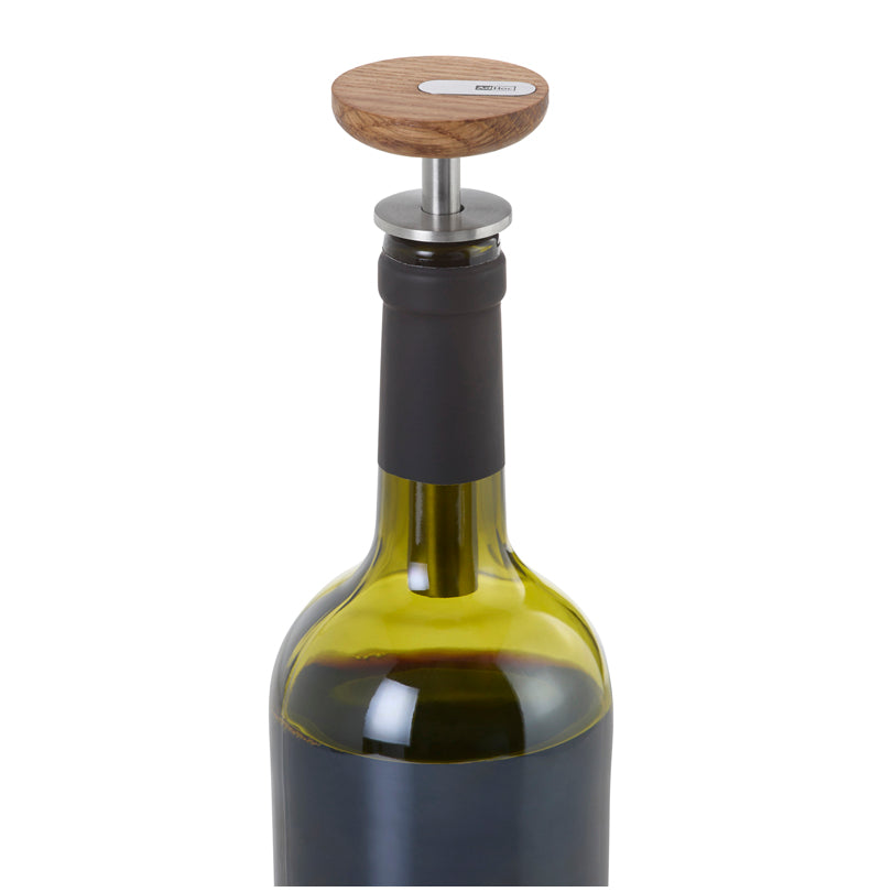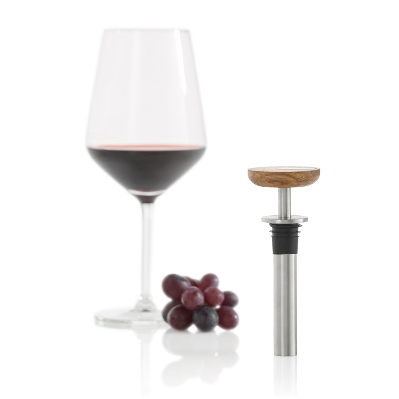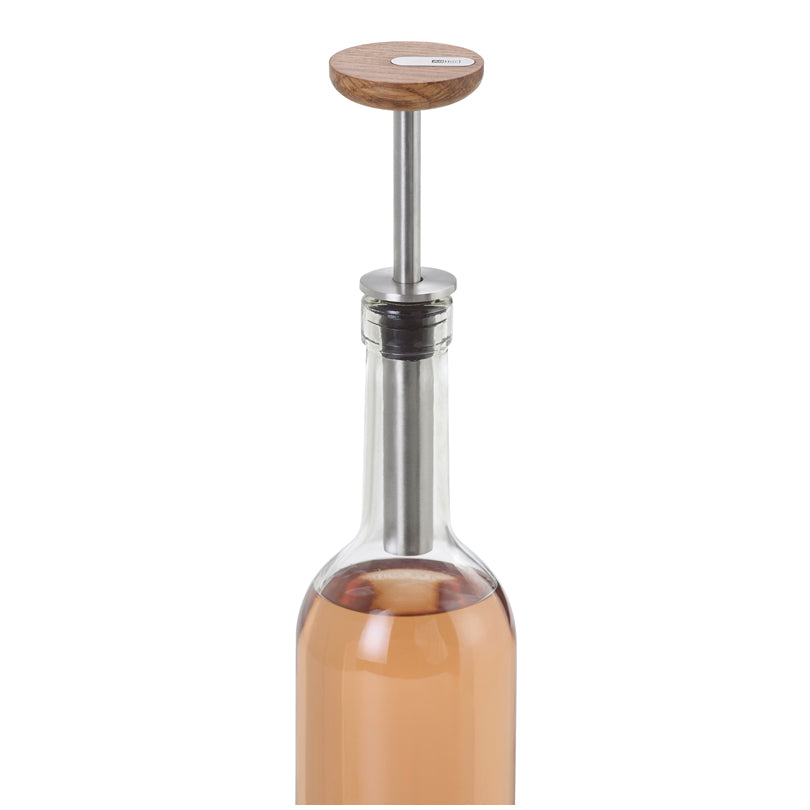 Il contatto dell’ossigeno con il vino fa si che il vino "si ossidi" facilmente una volta che la bottiglia è aperta. Entro poche ore il vino può andare a male. Questo processo di ossidazione può essere rallentato, utilizzando la pompa salvavino. Il salvavino toglie l’aria dalla bottiglia, conservando il vino per un paio di giorni. Realizzato con materiali di pregio: legno di quercia, acciaio inossidabile spazzolato e silicone, idoneo al contatto con alimenti. Non lavabile in lavastoviglie.