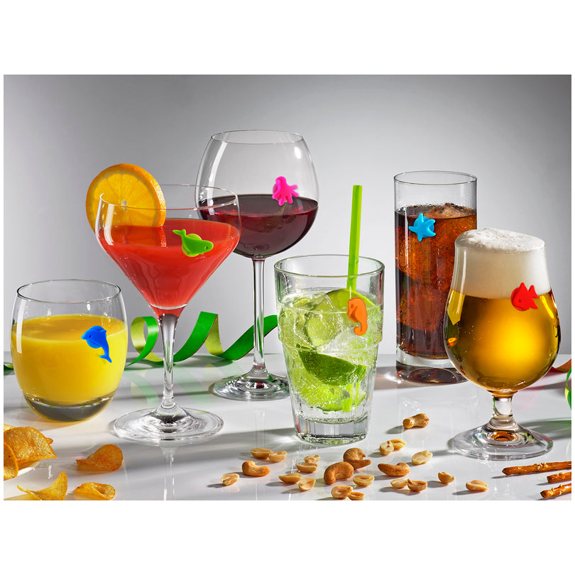I segnabicchieri in silicone animano gli aperitivi e le serate festose! Grazie alla ventosa sul retro, i segnabicchieri aderiscono facilmente a qualsiasi superficie liscia, consentendo nello stesso momento a ciascuno degli ospiti di individuare il proprio bicchiere.