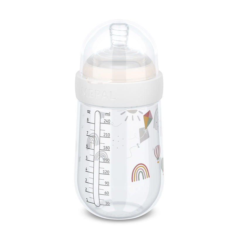 Il biberon Mio da 240 ml, a tenuta stagna e con tettarella dalla forma naturale in silicone medicale, unisce comfort e facilità d'uso. La tettarella a spirale, priva di BPA, e il design ergonomico garantiscono una presa comoda e un'esperienza di allattamento naturale. Il sistema di valvola anticolica riduce le interruzioni durante l'allattamento e previene il fastidio. Questa valvola dirige inoltre l'aria all'interno del biberon, lontano dalla pancia del bambino. Facile da riempire grazie all'apertura di riempimento grande. Realizzato in materiale sicuro e resistente all'usura. Adatto a lavastoviglie, microonde e congelatore.