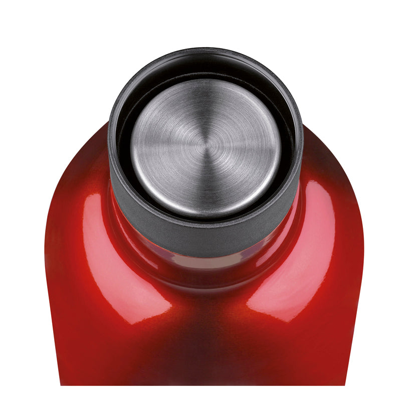 La bottiglia termica, realizzata in acciaio inossidabile, è caratterizzata dalla sua imboccatura a 360°, che consente di bere da qualsiasi punto del bordo della bottiglia. Dotata di un sistema a doppia parete con rivestimento interno in rame, che mantiene le vostre bevande calde fino a 18 ore e fredde fino a 24 ore. La bottiglia è adatta a bevande gasate, infrangibile ed è a tenuta stagna.