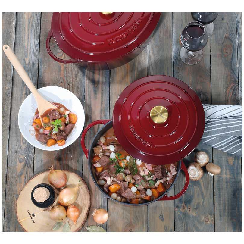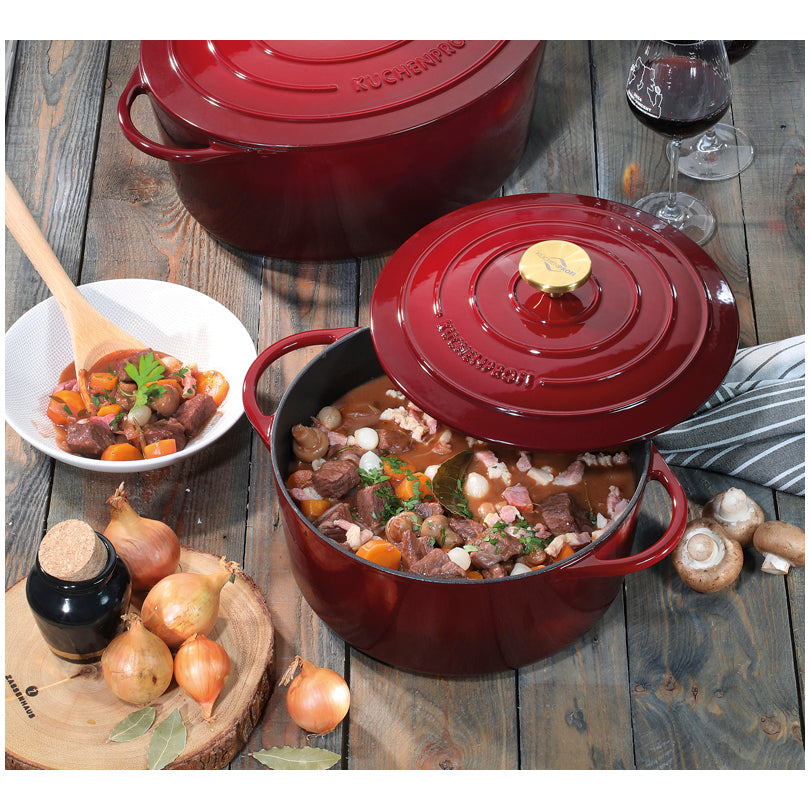 Le pentole in ghisa di ferro con un rivestimento di smalto durevole di alta qualità "Provence" sono versatili - utilizzabili per rosolare, brasare, cuocere al forno e friggere. Il loro materiale è caratterizzato da un'ottima capacità di accumulo termico e distribuzione del calore, che consente un notevole risparmio energetico. Facili da maneggiare e pulire. Il pomolo del coperchio in acciaio inossidabile è resistente al forno fino 250°C. Adatte a tutti i piani di cottura, induzione inclusa.