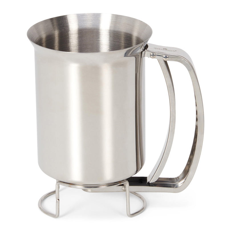 Il dispenser dosatore per impasti, realizzato in acciaio inossidabile, è resistente alla corrosione e ad alte temperature. Facilita il dosaggio dell’impasto durante la preparazione di pancake, crêpe, cupcake e waffle. Comodo da maneggiare, grazie alla pratica impugnatura a maniglia con sistema apri e chiudi. Prima del primo utilizzo, lavare il dispenser dosatore in lavastoviglie o pulirlo con acqua calda e detersivo. In seguito asciugatelo accuratamente.