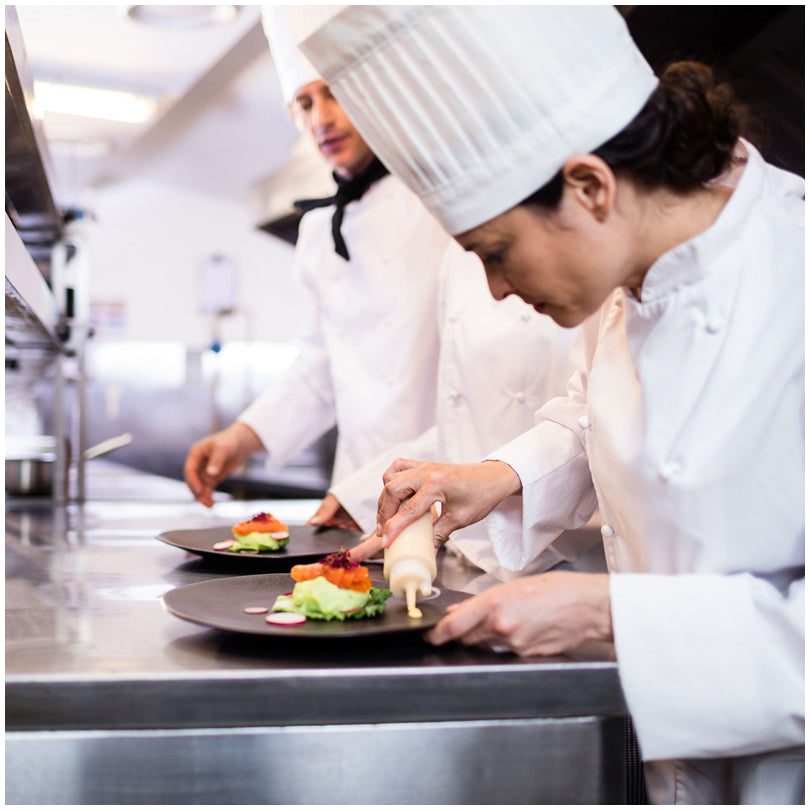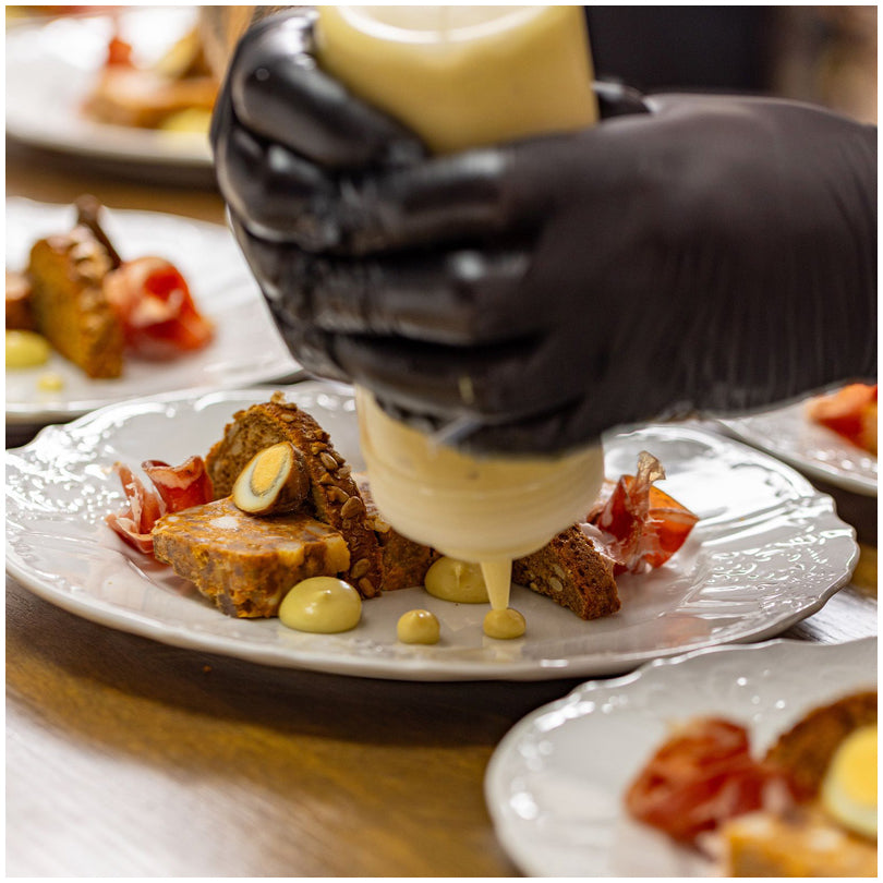 I flaconi dosatori, realizzati in resina (PP e PE), sono la soluzione perfetta per un dosaggio senza sforzo, mirato e pulito di salse, aceto, ketchup e altri ingredienti. Facili da riempire, grazie alla grande apertura. Il tappo a chiusura salda garantisce una conservazione igienica e impedisce il contatto del contenuto con aria e germi. I flaconi mantengono la loro forma anche se vengono utilizzati e riempiti frequentemente. Lavabili in lavastoviglie e privi di BPA