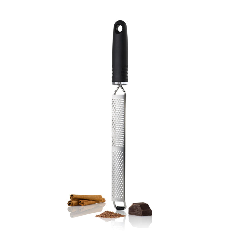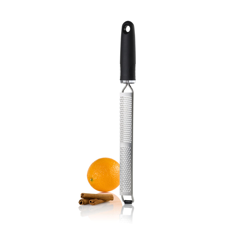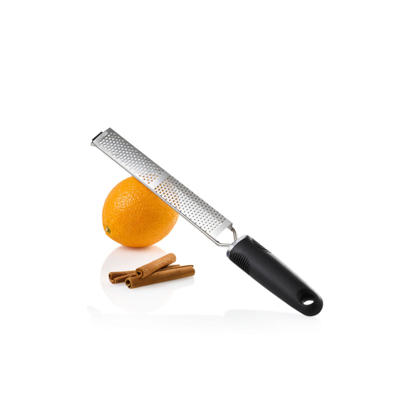 La grattugia con 2 superfici di taglio garantisce dei risultati ottimi, senza sforzo. La lama fotoincisa "NanoGrate", con i suoi 1.188 denti estremamente taglienti è ottima per grattugiare spezie come la noce moscata, la cannella o le fave di tonka. La lama fotoincisa "PreciseGrate", con i suoi 242 denti estremamente taglienti, è ottima per grattugiare del formaggio duro, p.es. parmigiano. Il piede antiscivolo in gomma e il telaio stabile in metallo garantiscono un lavoro sicuro. Custodia protettiva inclusa. Lavabile in lavastoviglie.