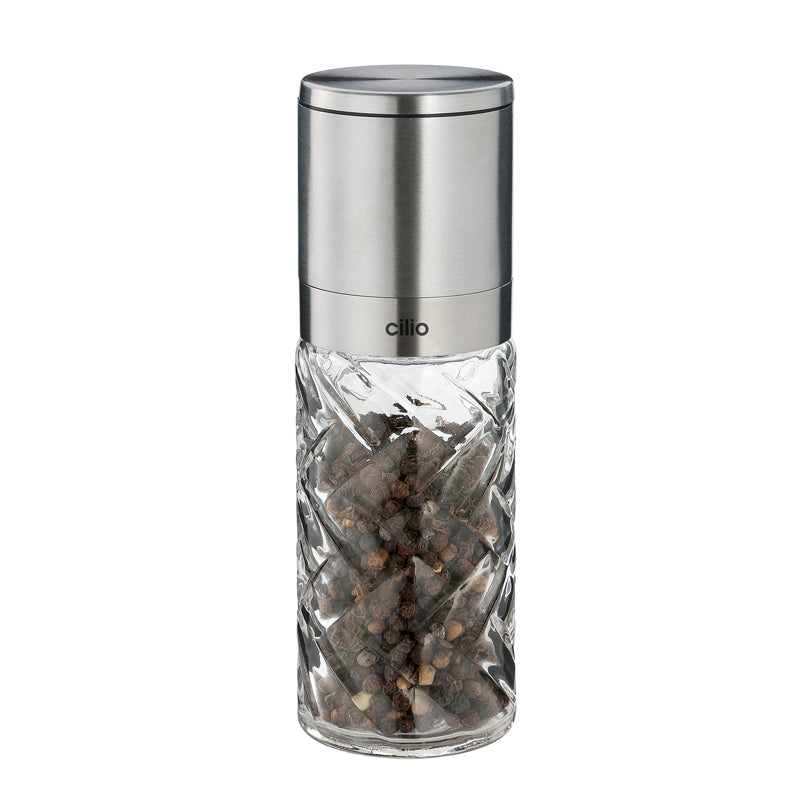 Il macinapepe/-sale Cristallo è dotato di una macina in ceramica di alta qualità, estremamente dura e resistente alla corrosione. Grazie alla precisa regolazione continua del grado di macinatura, da fine a grosso, è perfetto per macinare pepe, sale ed erbe aromatiche secche. Il coperchio salvaaromi, incluso nella confezione, tiene pulito il posto di lavoro e protegge le spezie.