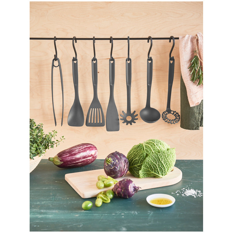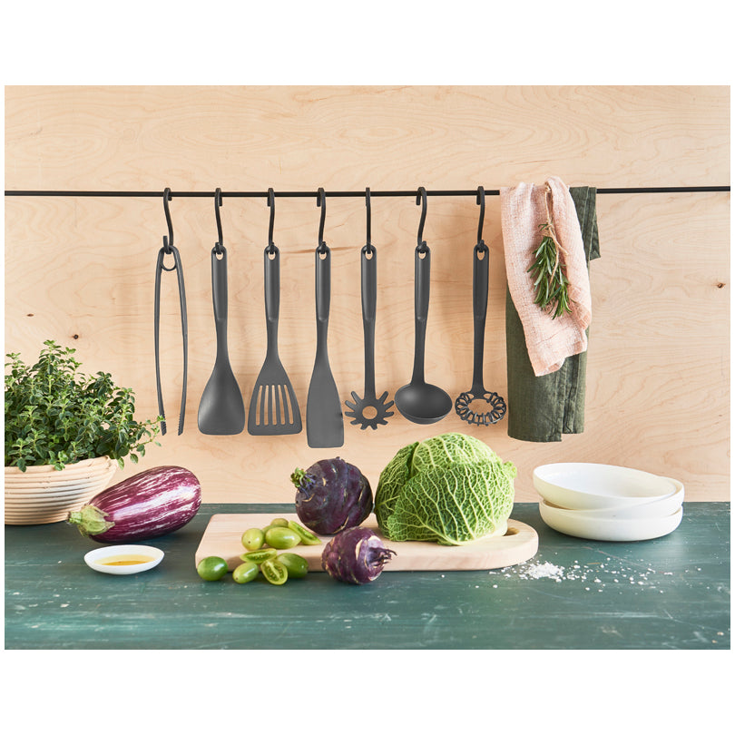 Gli utensili da cucina della linea "BIO" sono realizzati in plastica a base biologica, fibra di vetro e poliammide. L'impronta di carbonio è stata ridotta di oltre il 50% rispetto agli utensili in plastica convenzionali. Sono ideali per l'utilizzo in pentole e padelle rivestite. Resistenti al calore fino a 250°C, lavabili in lavastoviglie e privi di BPA.