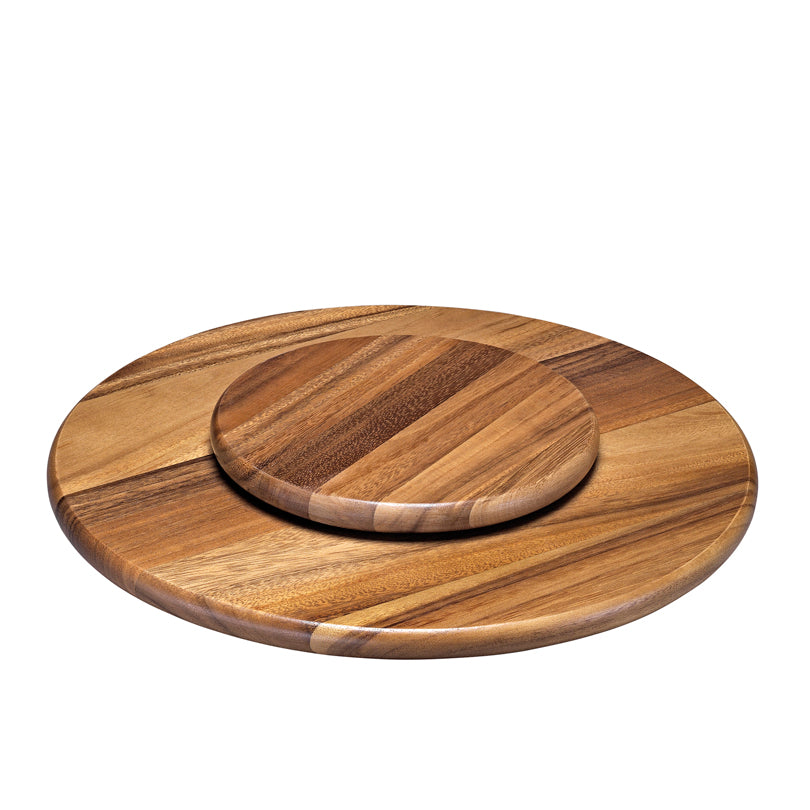 Piatto girevole con cuscinetti a sfera, in legno di acacia con base solida per la massima stabilità.