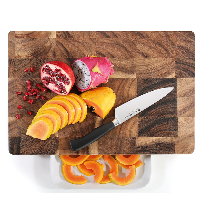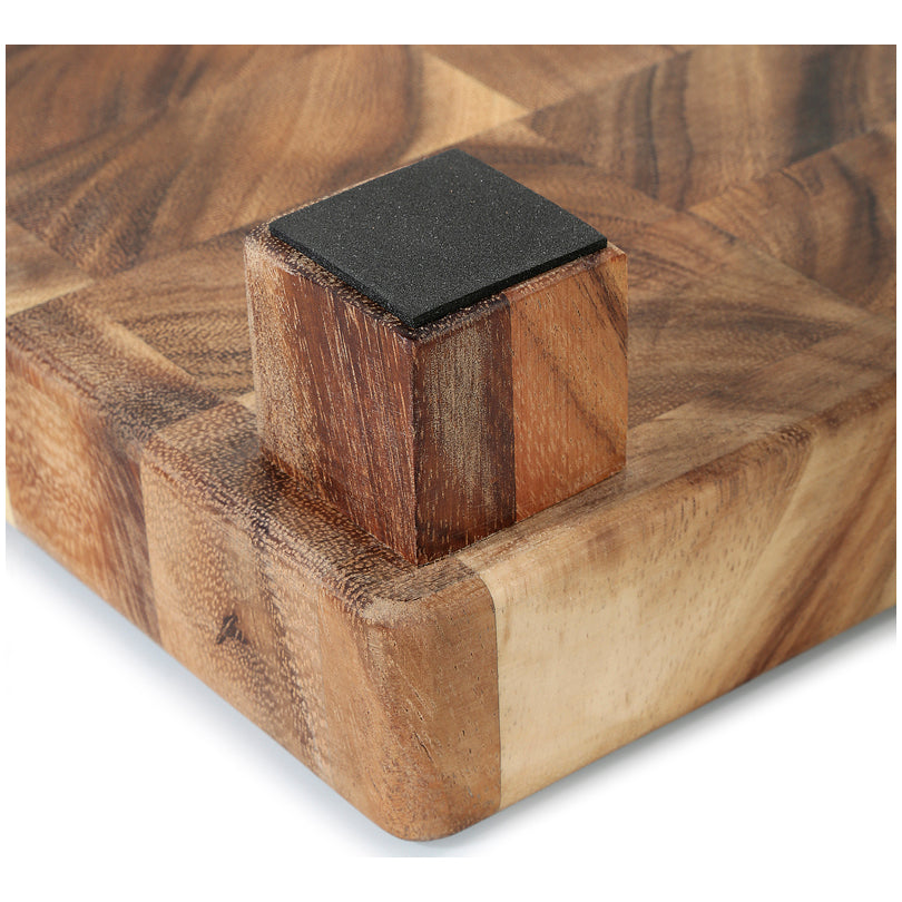 Tagliere solido e piacevole, grazie alla sua struttura a mosaico molto resistente. I 4 piedini antiscivolo garantiscono un arresto sicuro. Cura: pulire il tagliere solo con un panno umido e lasciarlo asciugare in posizione verticale. Eccessiva umidità o differenze di temperatura possono provocare deformazioni, crepe e scolorimento. Curare con olio vegetale alimentare.