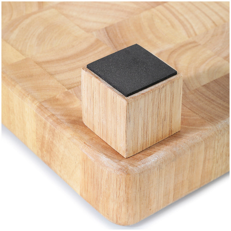 Il tagliere con piedini extra alti, realizzato in legno dell'albero della gomma, proveniente da piantagioni sostenibili, è un vero colpo d'occhio. L'affascinante struttura a mosaico, realizzata con tasselli di legno singolarmente incollati, non è solo esteticamente gradevole, essa rende il tagliere particolarmente resistente e durevole. I piedini extra alti ed antiscivolo, permettono di posizionare sotto il tagliere dei piatti e vassoi piani. Dopo l'uso, basta pulirlo con un panno umido e lasciarlo asciugare in posizione verticale.
