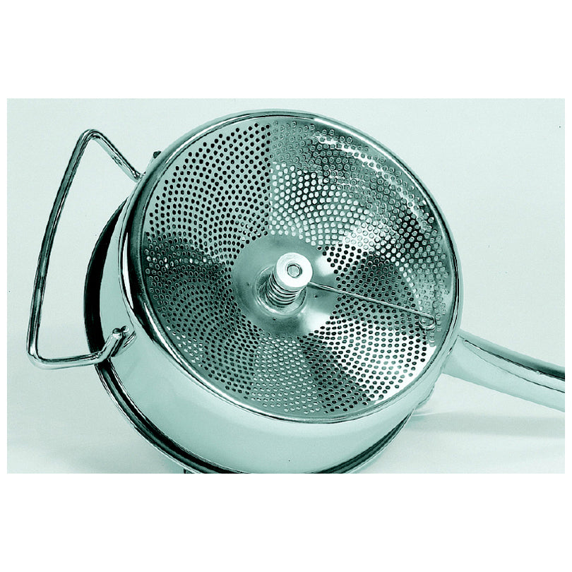 il potente sistema meccanico e un efficace e brevettato raschiatore sul fondo esterno consentono di non sprecare nulla dell'alimento da passare. Pratico, veloce e veratile. Foratura: 2 mm - Diametro: 20 cm - Volume: 1,75 l. Lavabile in lavastoviglie.