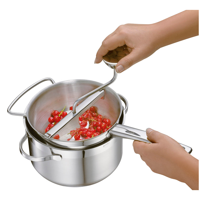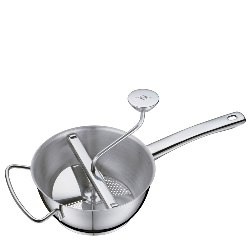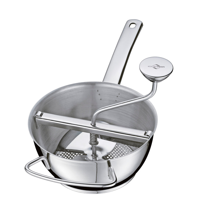Il passaverdure è un vero classico nelle cucine italiane, per fare le conserve e le passate di pomodoro. Un altro grande vantaggio del passaverdure manuale è la sua capacità di preservare il sapore naturale degli alimenti. Inoltre consente di mantenere intatte le proprietà organolettiche degli ingredienti. 3 diversi dischi forati, facilmente intercambiabili, da 1 mm (fine), 3 mm (medio) e 5 mm (grosso) facilitano la preparazione e garantiscono una consistenza liscia e omogenea. Il manico ergonomico e il supporto stabile garantiscono una presa sicura su pentole e ciotole. Il raschietto metallico, perfettamente aderente, rimuove senza fatica i residui della purea. Facile da pulire. Lavabile in lavastoviglie.