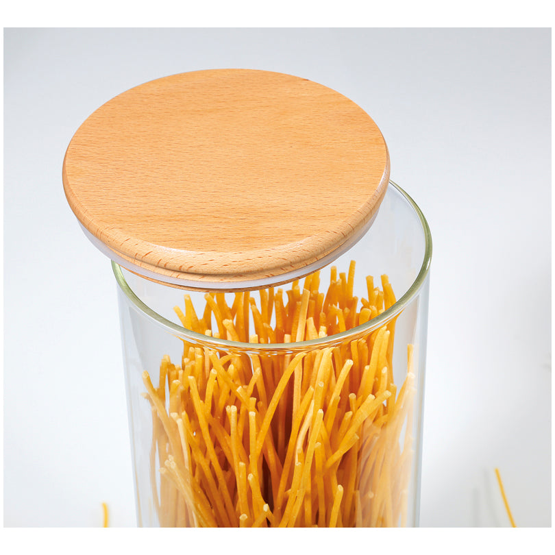 I barattoli da cucina non solo conservano l'aroma e la freschezza, come p. es. della pasta, del caffè o della farina, ma rispondono anche alle dinamiche della vita moderna, dove lo spazio è poco ed anche il tempo per cercare tutto quello che ci serve. Assolutamente non possono mancare in una cucina moderna e funzionale. ll contenitore versatile, realizzato in robusto vetro borosilicato, offre una visione chiara degli ingredienti e del livello di riempimento. Il coperchio in legno di faggio chiude ermeticamente grazie alla guarnizione in silicone.