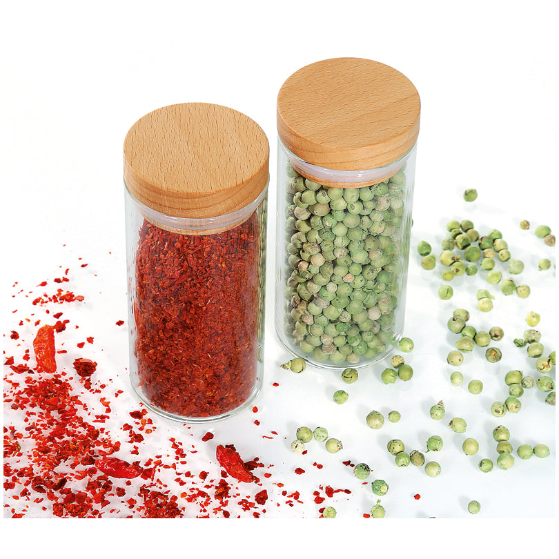 I barattoli per spezie, realizzati in vetro borosilicato con coperchio in legno di faggio sono dotati di una chiusura sigillante, grazie alla guarnizione in silicone.