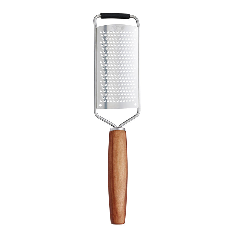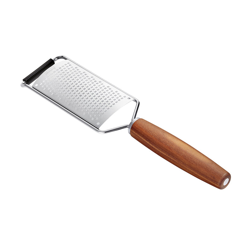 Il manico dei prodotti della linea "Sense" è realizzato in legno di prugna certificato FSC, i parti funzionali sono realizzati in acciaio inox. La grattugia formaggio di alta qualità é stata prodotta utilizzando il speciale processo di foto-incisione. La grattugia formaggio è fornito in una nobile confezione da regalo di materiale riciclato Non adatto per il lavaggio in lavastoviglie.