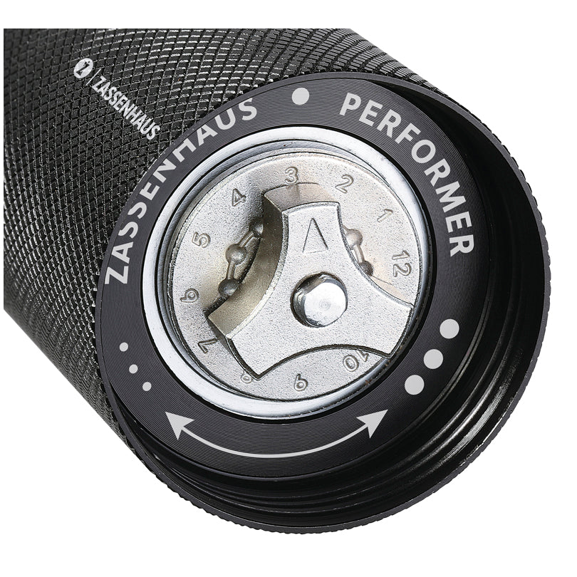 Il macinaspezie Performer garantisce, grazie alla sua macina extra-larga in acciaio inossidabile fresato a CNC e al mandrino con doppi cuscinetti a sfera, maneggevolezza e risultati precisi. Ideale per pepe lungo, così come per grani di pepe grandi e bacche di spezie. Il grado di macinatura desiderato, da fine a grosso, può essere impostato con esattezza sul fondo della macina.
