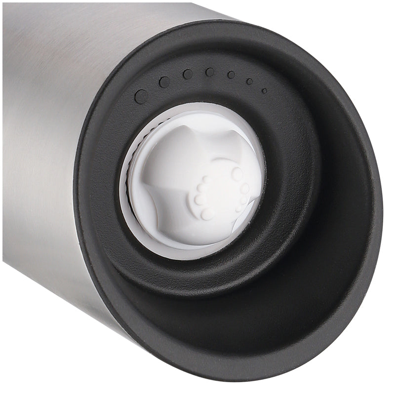 Il macinapepe/-sale Collina è dotato di una macina in ceramica di alta qualità, estremamente dura e resistente alla corrosione, nonchè di un accumulatore litio-ione. Grazie alla precisa regolazione continua del grado di macinatura, da fine a grosso, è perfetto per macinare pepe, sale ed erbe aromatiche secche. Lo spegnimento e l'accensione automatici consentono l'azionamento con una sola mano. Cavo USB incluso nella confezione.