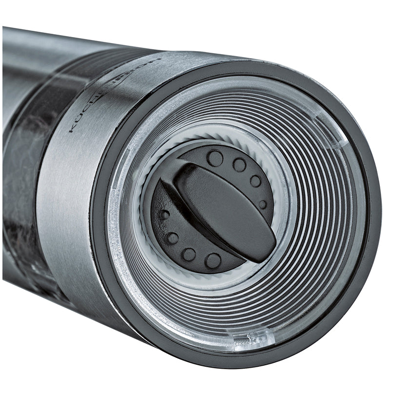Le macine sono dotate di una macina in ceramica di alta qualità, come anche di una vite di regolazione del grado della macinatura, da fine o grosso. Esse sono perfette per macinare pepe, sale ed erbe aromatiche secche. Inoltre sono attrezzate di una luce LED, che permette un'illuminazione ottimale. Il supporto in legno incluso nella confezione tiene pulito il posto di lavoro e protegge le spezie. Alimentazione: 8 batterie AA da 1,5 V (incluse nella confezione).