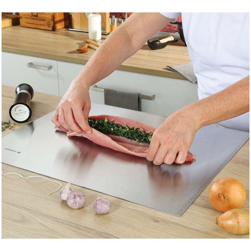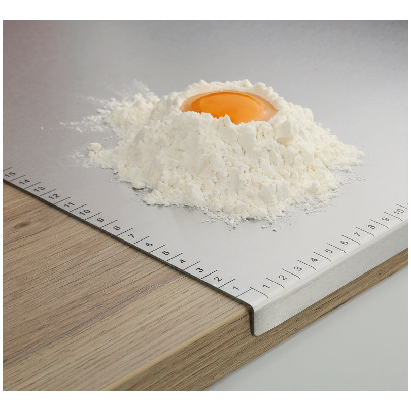La spianatoia multiuso con pratica scala in cm, realizzata in acciaio inossidabile, è una base d'appoggio ideale per svariati usi e garantisce un'igiene completa e sicura, prevenendo la contaminazione con alimenti residui. Può essere usata in molteplici modi: per impastare, come piano d'appoggio per pentole o padelle, come appoggio per piccoli elettrodomestici, ma anche come protezione per il piano di cottura (copri-fornelli). Pulizia rapida e accurata garantita - lavabile in lavastoviglie.