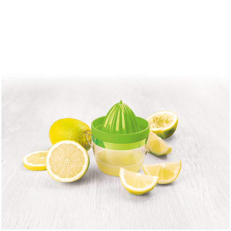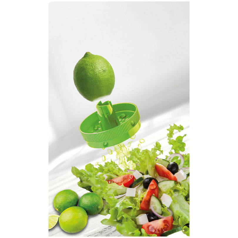 EASY SQUEEZY “Lo Spremintavola”. Adatto per spremere limoni, lime e mapo. Grazie alle sue dimensioni ridotte è ideale anche per spremere direttamente sulle pietanze. Utilizzo: Tagliare la base dell'agrume, posizionarlo poi sull’accessorio a stelo o sulla pigna e spremerlo. Può essere utilizzato anche come pratico contenitore salva freschezza per frigo. Realizzato in polipropilene e kostil, idoneo all'uso alimentare.