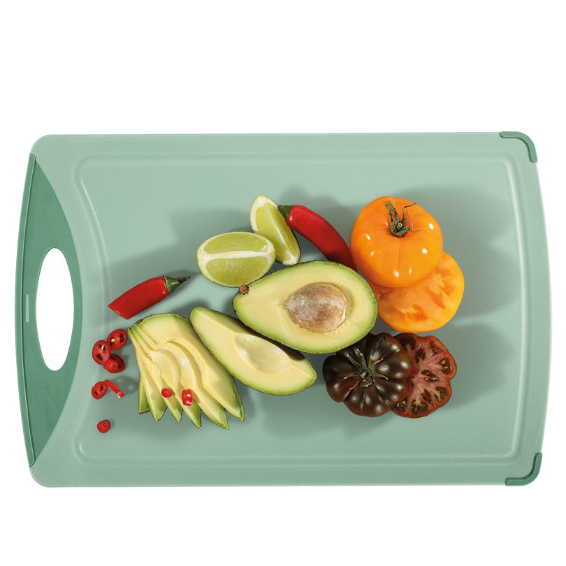Il tagliere "Easy Cut" è la base ideale per tutti i lavori di taglio nella cucina quotidiana. È antiscivolo, può essere utilizzato su entrambi i lati e nello stesso tempo non rovina il filo della lama del coltello. Realizzato in polietilene di alta qualità (PE50). Non adatto come sottopentola per padelle e pentole calde! Lavabile in lavastoviglie.