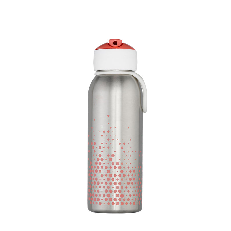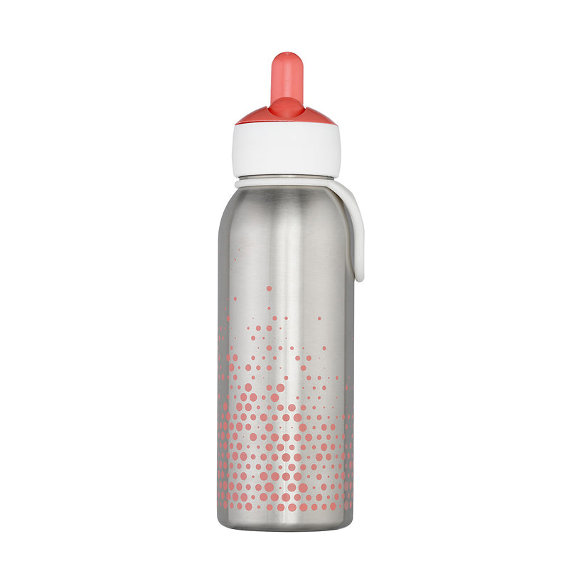 Borraccia termica a tenuta stagna, che mantiene le bevande calde per 9 ore e fredde per 12 ore. La funzione flip-up integrata, facilita il bere, ribaltando il beccuccio verso l'alto. Il beccuccio è fissato ad una cannuccia che permette al liquido di risalire, senza dover inclinare la borraccia. Può essere usata anche senza cannuccia. Indipendentemente dalla temperatura del liquido, la borraccia all'esterno non si riscalda, ne fa condensa. Adatta anche per bevande gassate. Le parti in plastica sono lavabili in lavastoviglie, per la bottiglia in acciaio inossidabile è consigliato il lavaggio a mano. Priva di BPA.