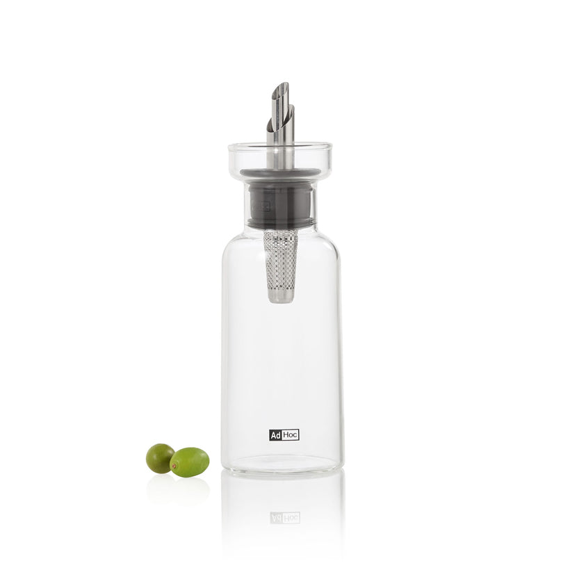 4in1: tappo versatore, salvagoccia, chiusura automatica e filtro in acciaio inox. Il dosaolio/aceto, realizzato in vetro borosilicato, un materiale assolutamente insapore, grazie allo speciale sistema di aerazione "PreciseFlow", garantisce un dosaggio affidabile ed economico. L'integrata chiusura a sfera “GravitySeal” chiude il dosatore in modo ermetico, sicuro e pulito. Durante l'uso, il filtro in acciaio inossidabile, situato all'interno del dispenser, trattiene erbe, peperoncini, ecc. Grazie al salvagoccia integrato, le gocce raccolte vengono riversate nella bottiglia. Pratico utilizzo con una sola mano - facile da aprire. L'ampia apertura di riempimento facilita anche il riempimento. Lavabile in lavastoviglie.