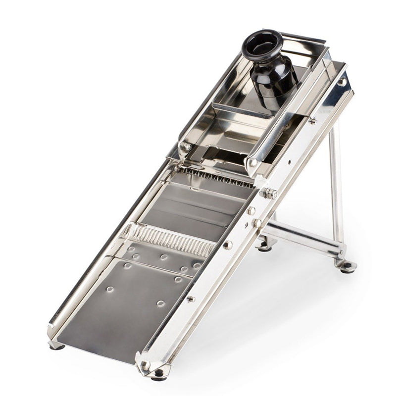 Questa mandolina di Bron Coucke è un apparecchio professionale costruito per durare nel tempo.